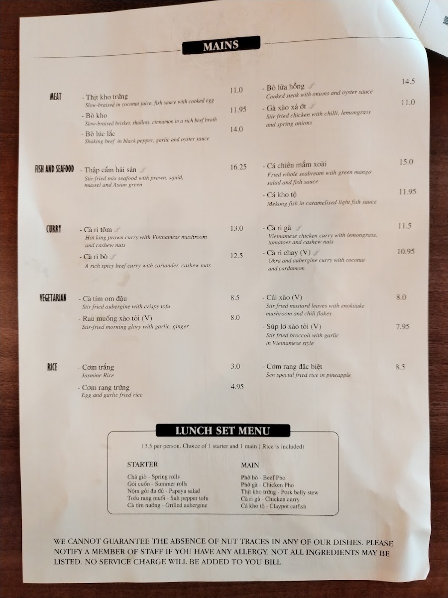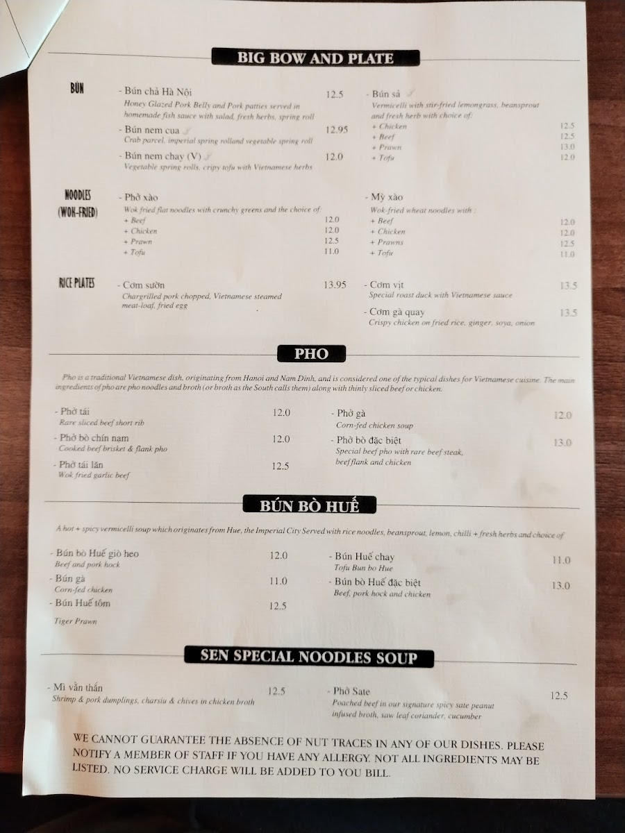 Located at 190 Lower Rd, London, Sen Restaurant offers an authentic Vietnamese dining experience that is quickly gaining acclaim among locals. The menu showcases a delectable selection of dishes that highlight fresh ingredients and bold flavors. Diners rave about the pork belly stew and beef pho, both of which deliver on taste and generous portion sizes. The restaurant also features a fantastic two-course lunch deal for just £15, perfect for those seeking quality without breaking the bank.